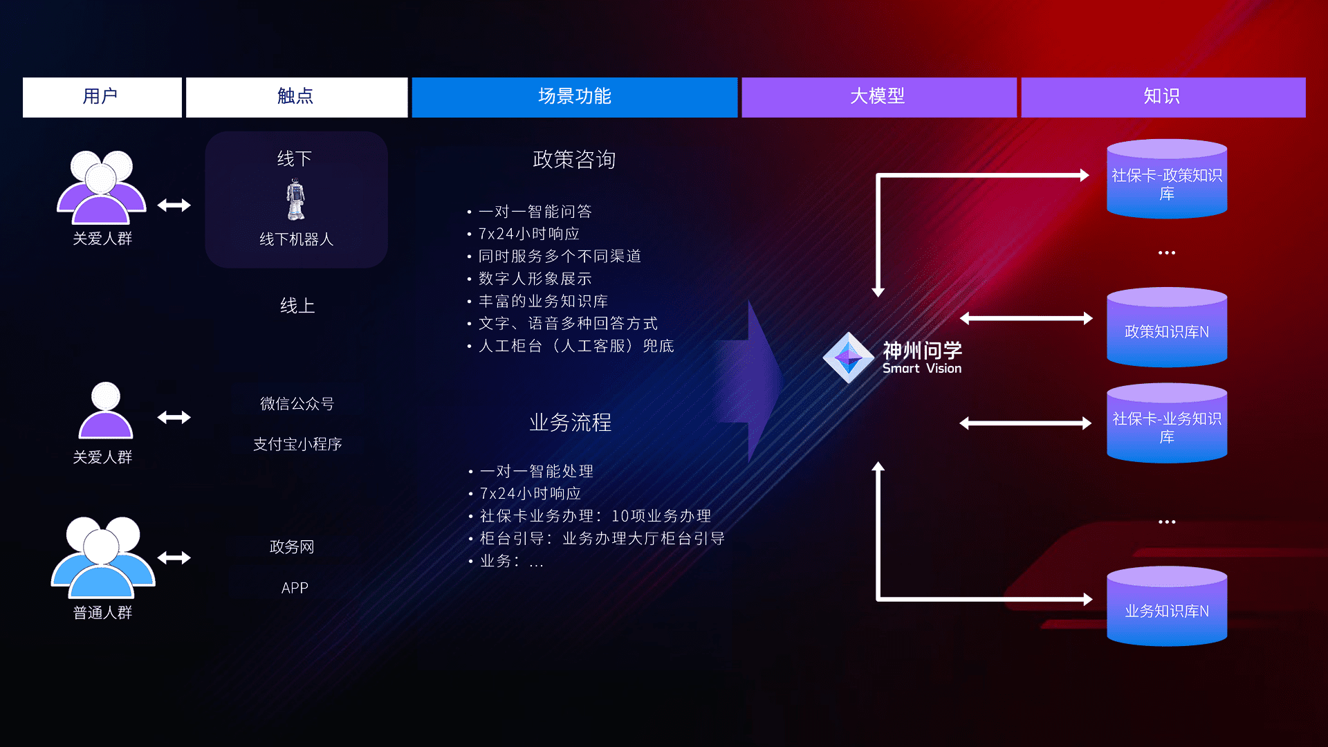 在服务大厅部署客服机器人,,,在线上应用和小程序配置客服数字人,,,,724小时为群众解答常规问题,,,客服机器人无法处理的,,,,转现场人工处理。。。。